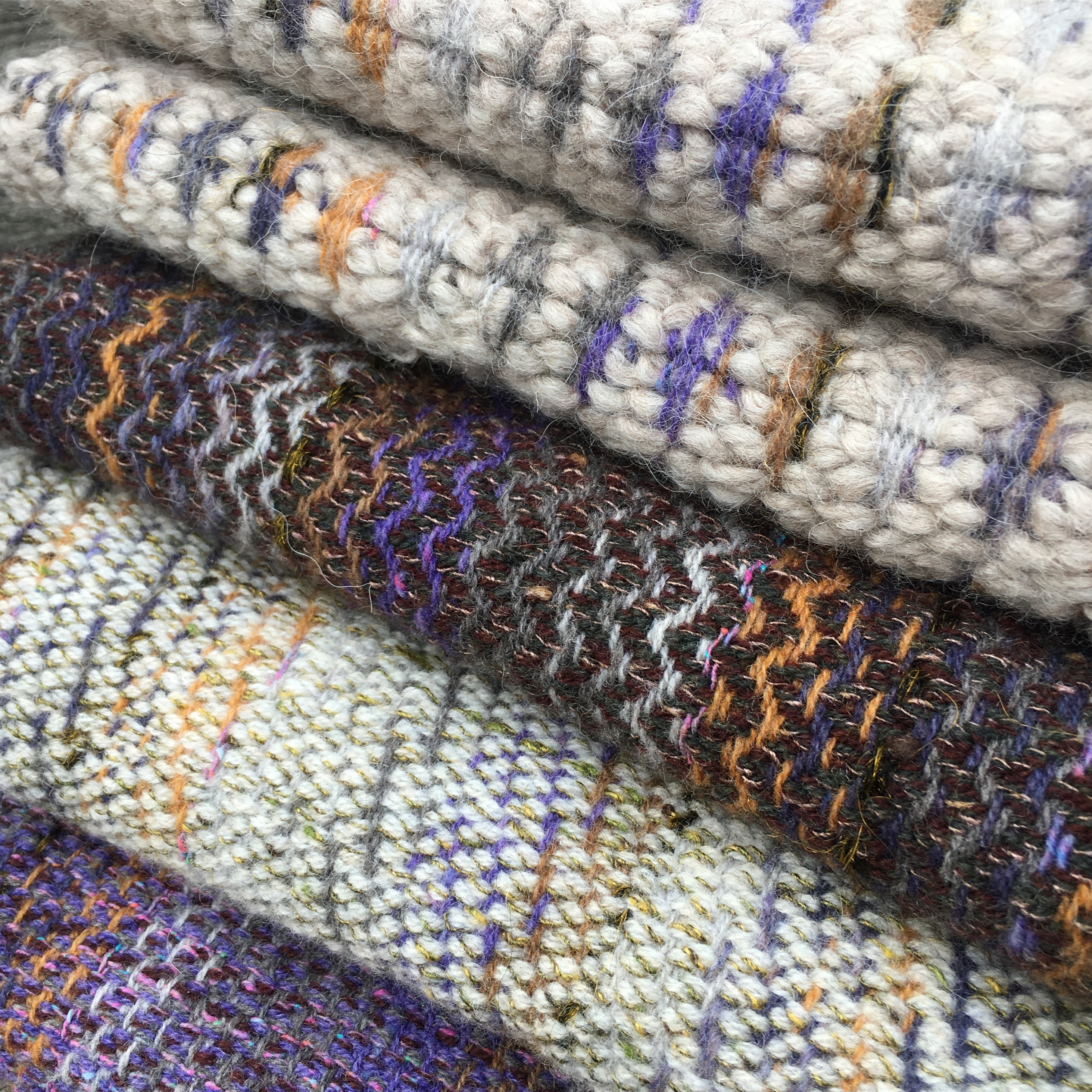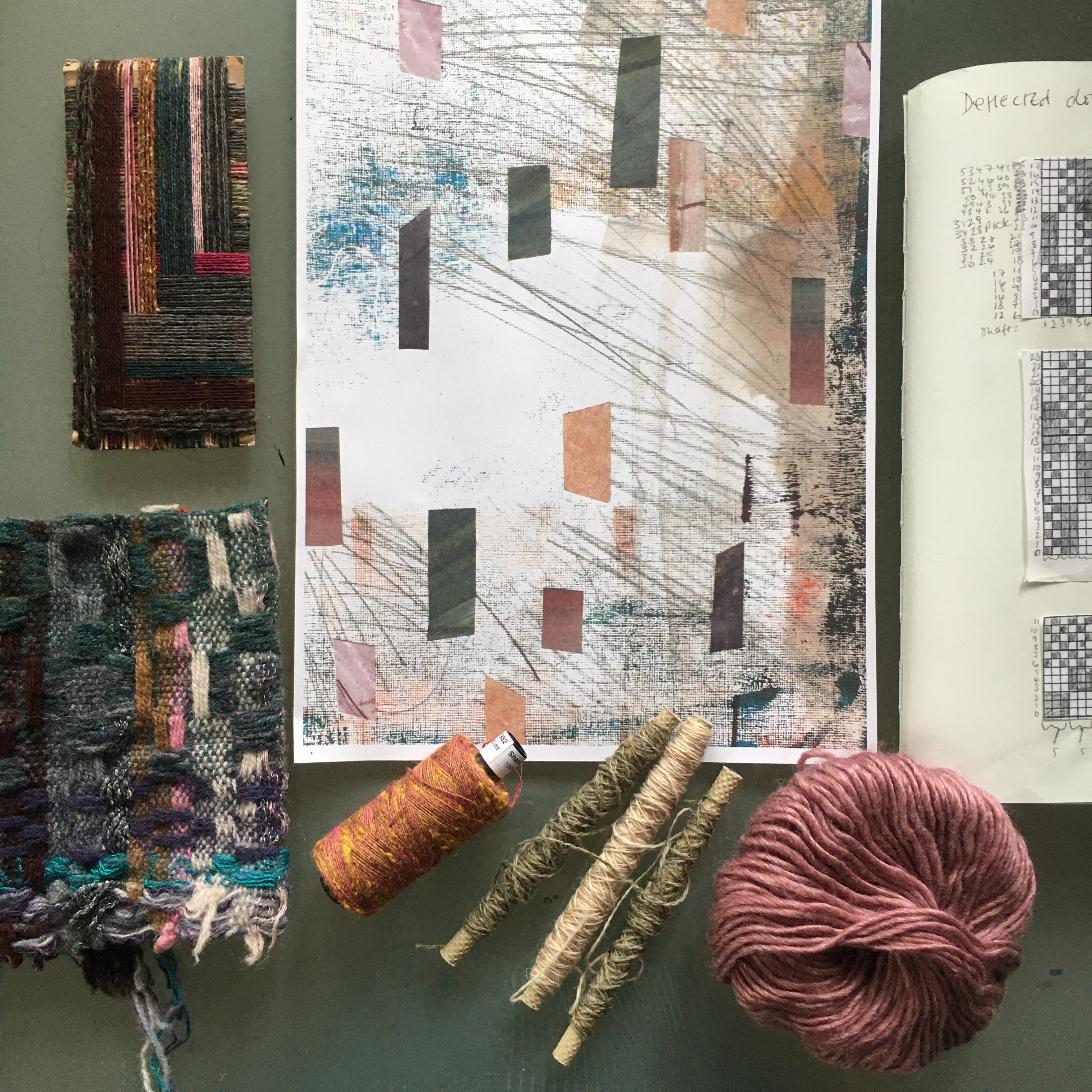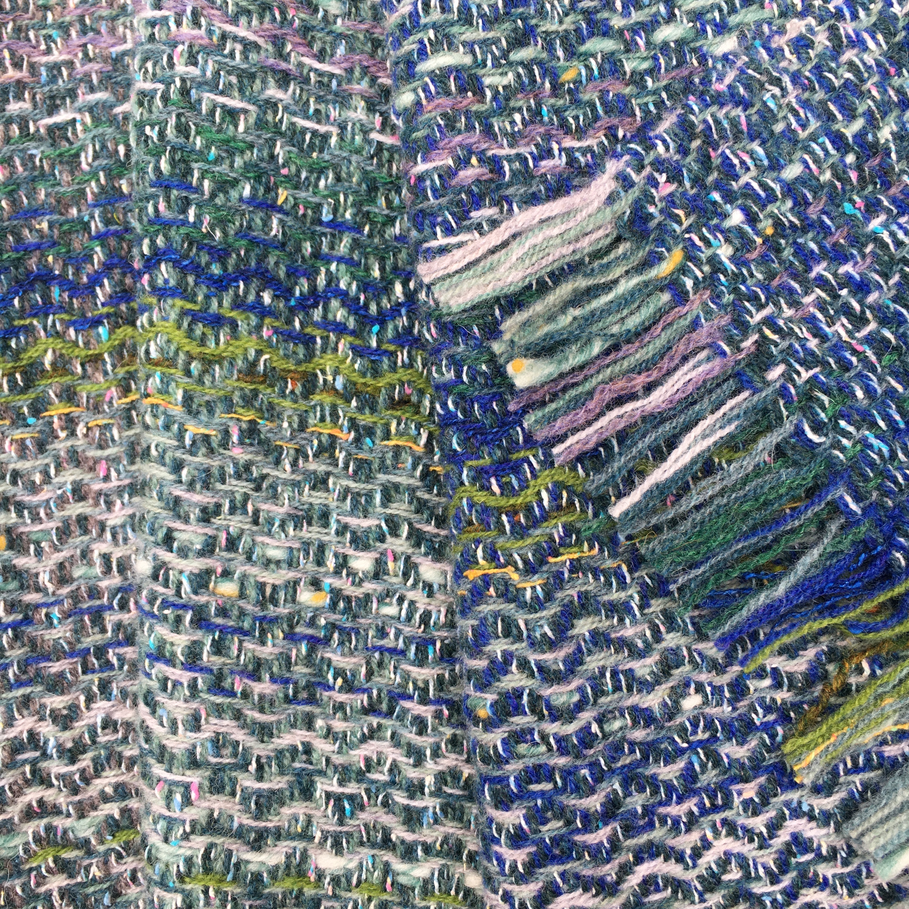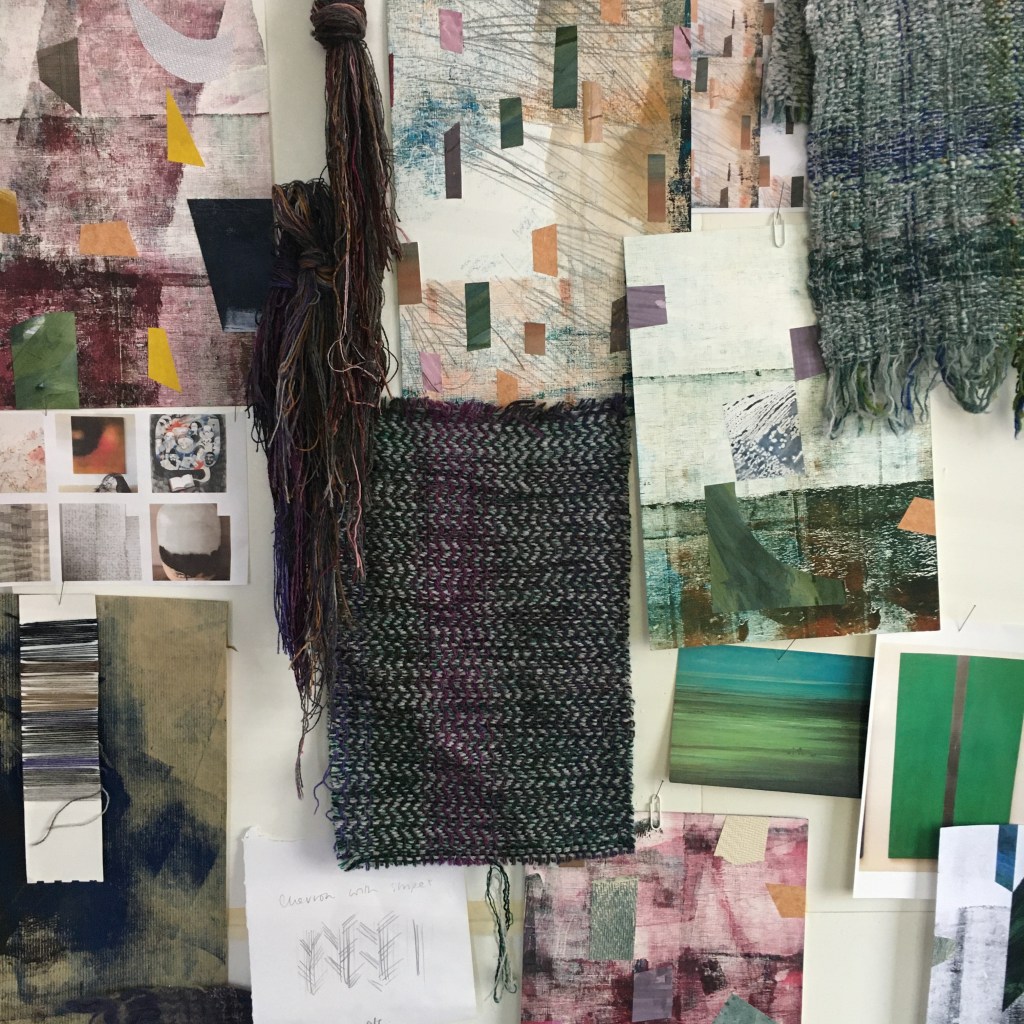 This year has brought many challenges, but somehow I’ve managed to keep working through it, albeit in different ways. Often, my creative practice has been a refuge from everything that has been going on in the world. After a regular start to the year, home schooling, combined with a studio move, suddenly meant that I had much less time to spend in my studio. Working at home, I concentrated on developing new ideas on paper, mixed media pieces which are an important part of my design process, as well as being artworks in their own right. An order of shantung silk from Bart and Francis gave me a broader palette of colours to work with, and the results have since found their way into my woven work.