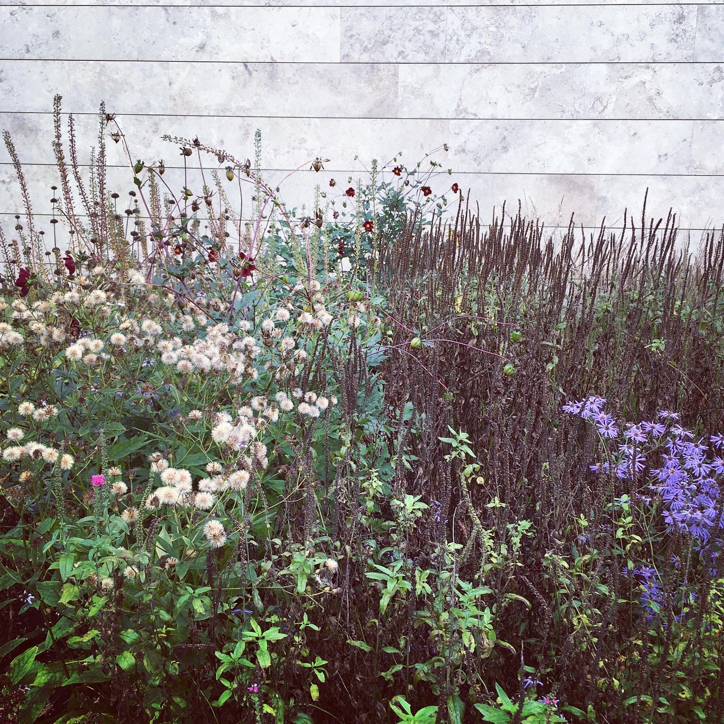 Last year at around this time I visited the Voorlinden Museum, a contemporary art museum not far from The Hague, to see the Anselm Kiefer exhibition. The gardens, designed by the renowned Dutch garden designer Piet Oudolf, were a tapestry of texture and colour, with grasses and seed heads interwoven with Michaelmas daisies and striking dahlias. The combination of soft violet, browns and greens has proven a rich vein of inspiration for the series of scarves I’ve woven over the summer.