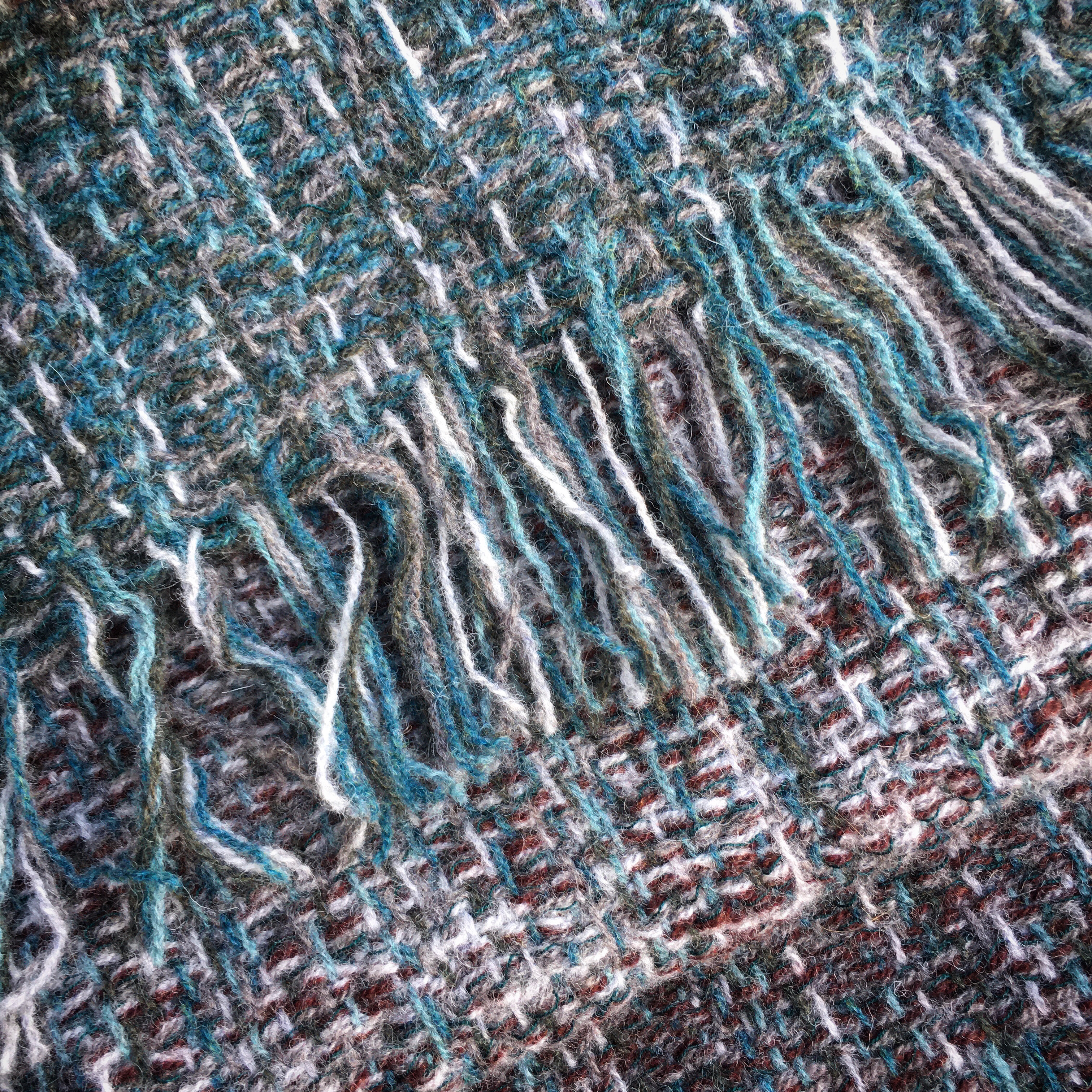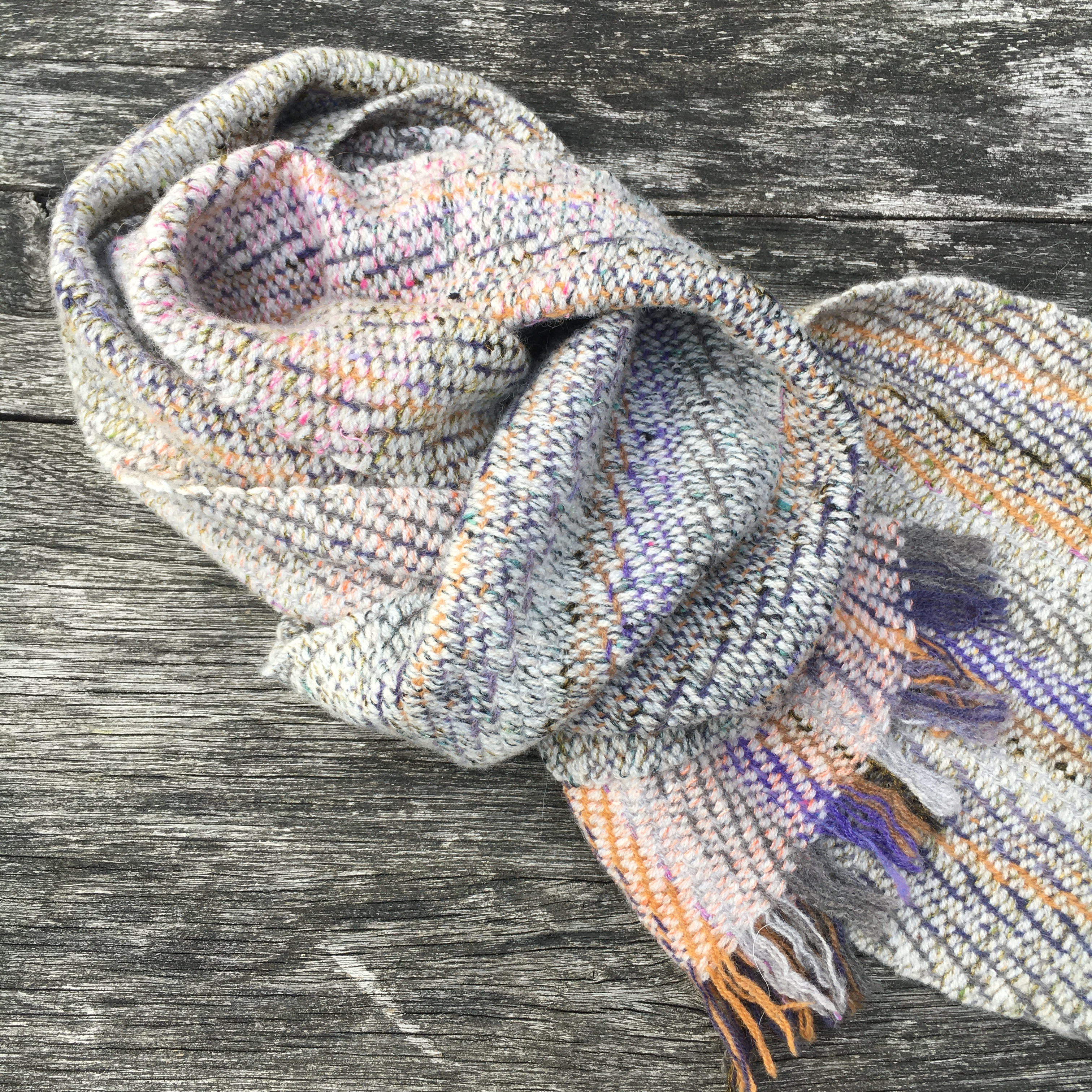 During August, in what is becoming something of a yearly tradition, I was lucky enough to be able to spend a week’s family holiday on the Hebridean Isle of Mull, staying in Limetree Cottage at Calgary, just a stone’s throw from the stunning beach at Calgary Bay. This a magical place where the sea and sky are a constantly changing presence and the colours have gently woven their way into the most recent batch of larger scarves to have found their way off my loom. When I’m weaving, I begin with an idea of the colours and atmosphere I’m in search of, winding these into the warp. Once the warp has been put onto the loom, I combine a variety of weave patterns with a range of colours and textures of weft threads to paint the full picture.