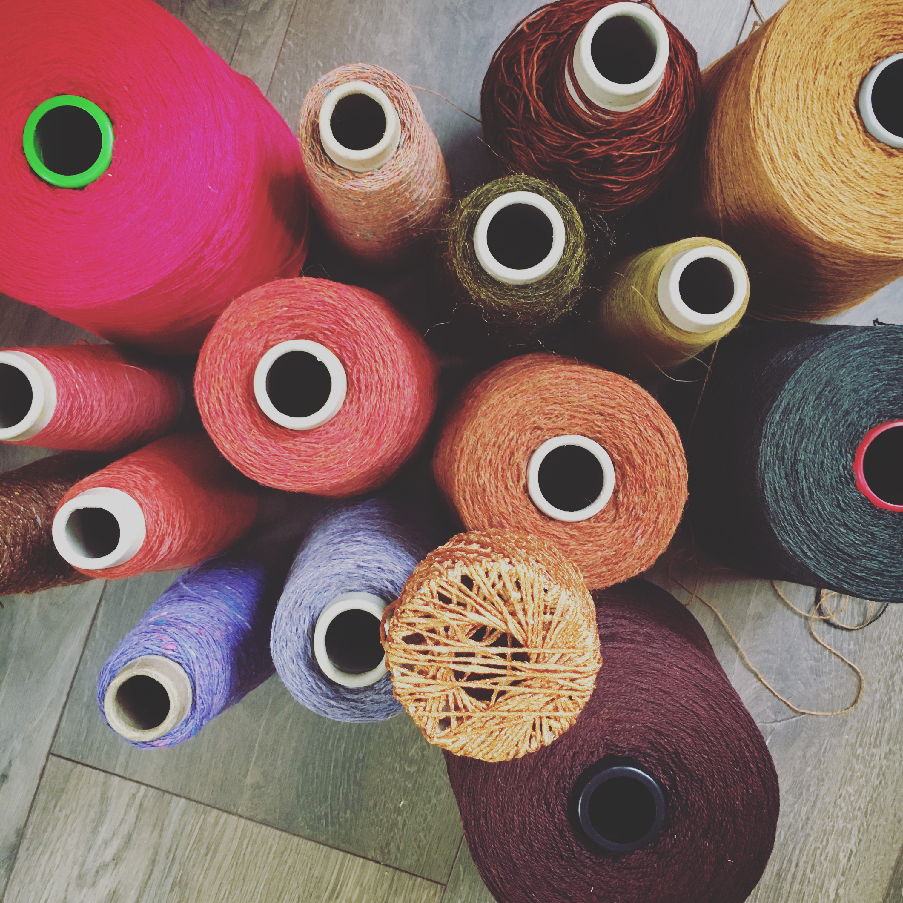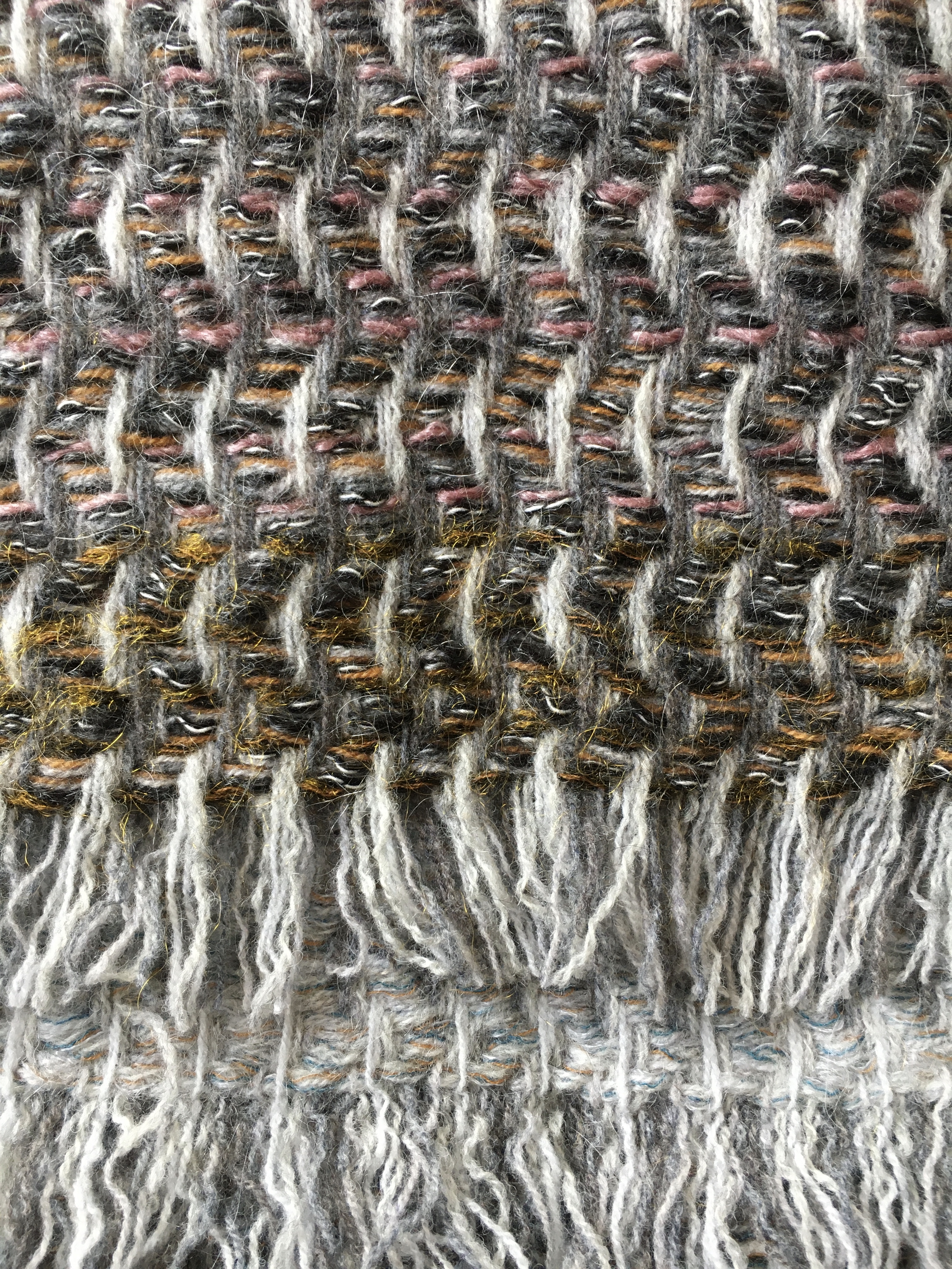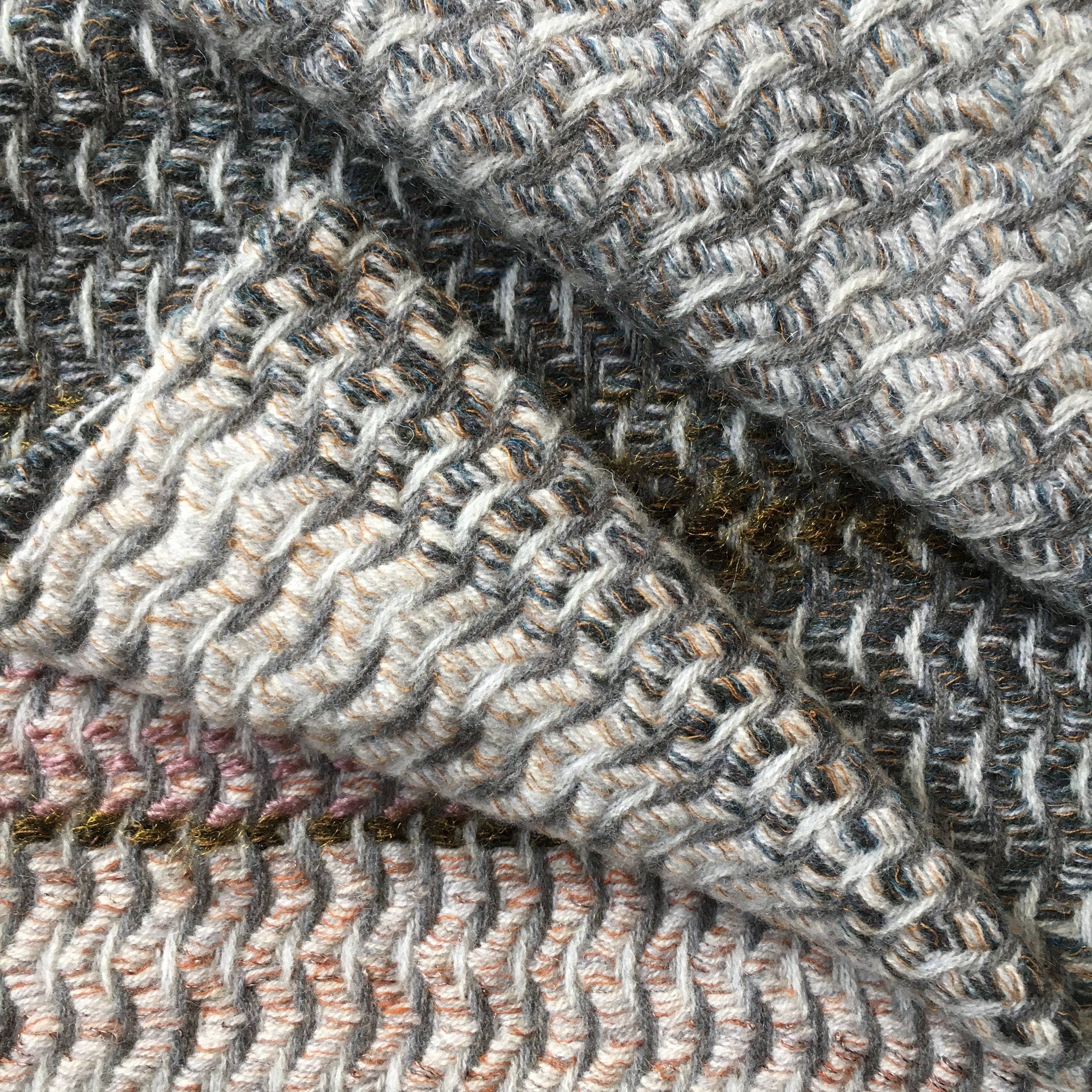 Finally, I’ll leave you with the current stack of soft, warm, luxurious lambswool scarves I’ve been working on over the past year or so. Rich colours pulled together on the loom, fusing colour, texture and pattern in a process of colour exploration.