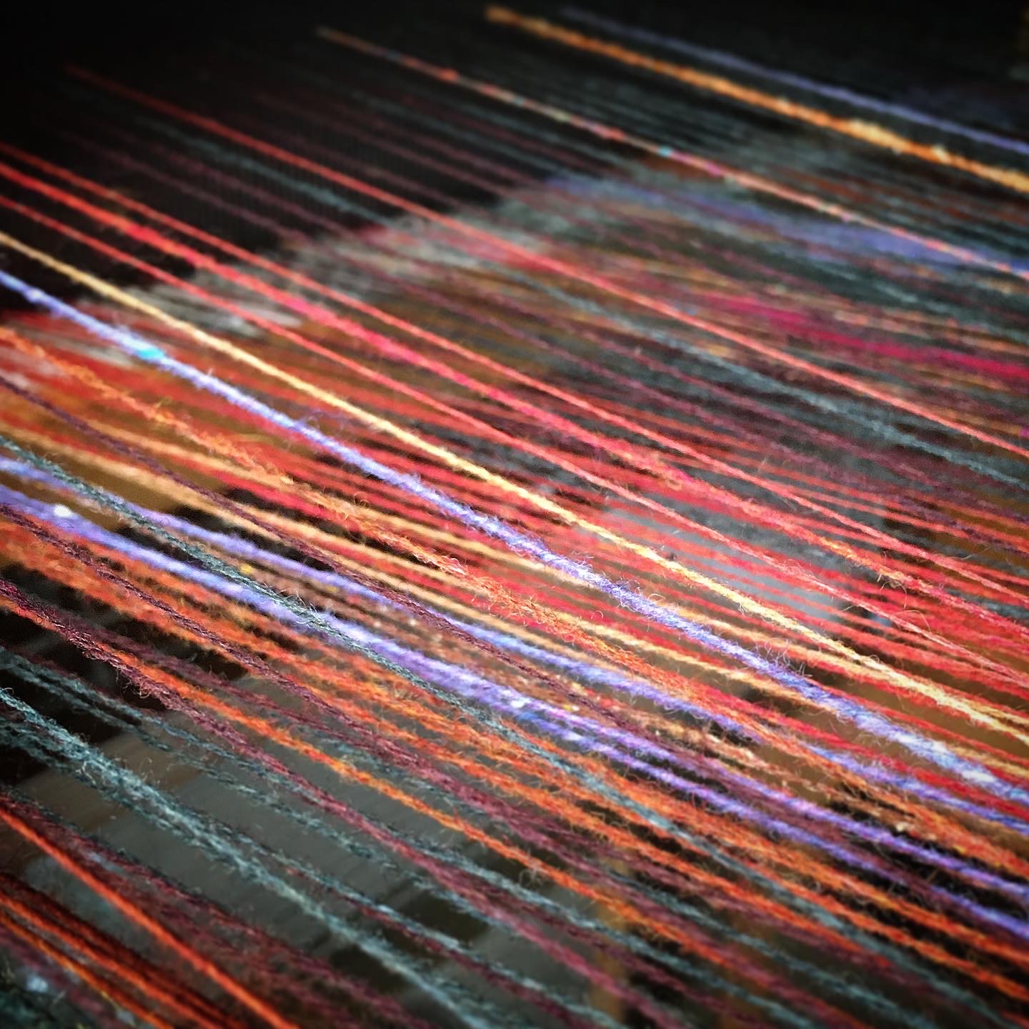 Colour is crucial in my work. Recently I’ve been asking myself when this fascination began. I think it began when I was at school; my art teachers introduced me to acrylic paints. I played with mixing colours and learnt that by placing different colours next to each other I could make them sing out or recede. Discovering how colours interact is still a huge part of my creative interest and investigation, both when working on paper and with threads on the loom. Weaving is essentially interlacing two sets of perpendicular threads, and the colours of those threads and the pattern they are combined in can give endless combinations and effects, endless scope for experimentation.