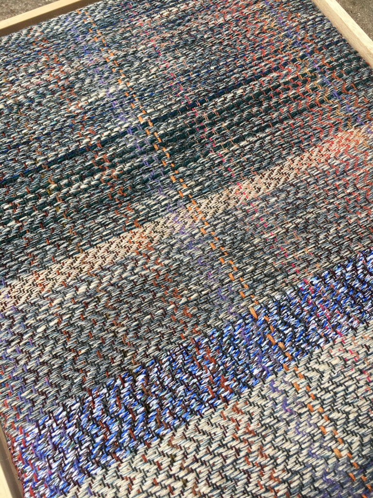 I recently completed a commission working in linen, wool and silk. The linen warp was quite challenging to work with but, combined with a lambswool/silk weft, resulted in a scarf with the most luxurious drape and sheen; something I’ll definitely be exploring further.