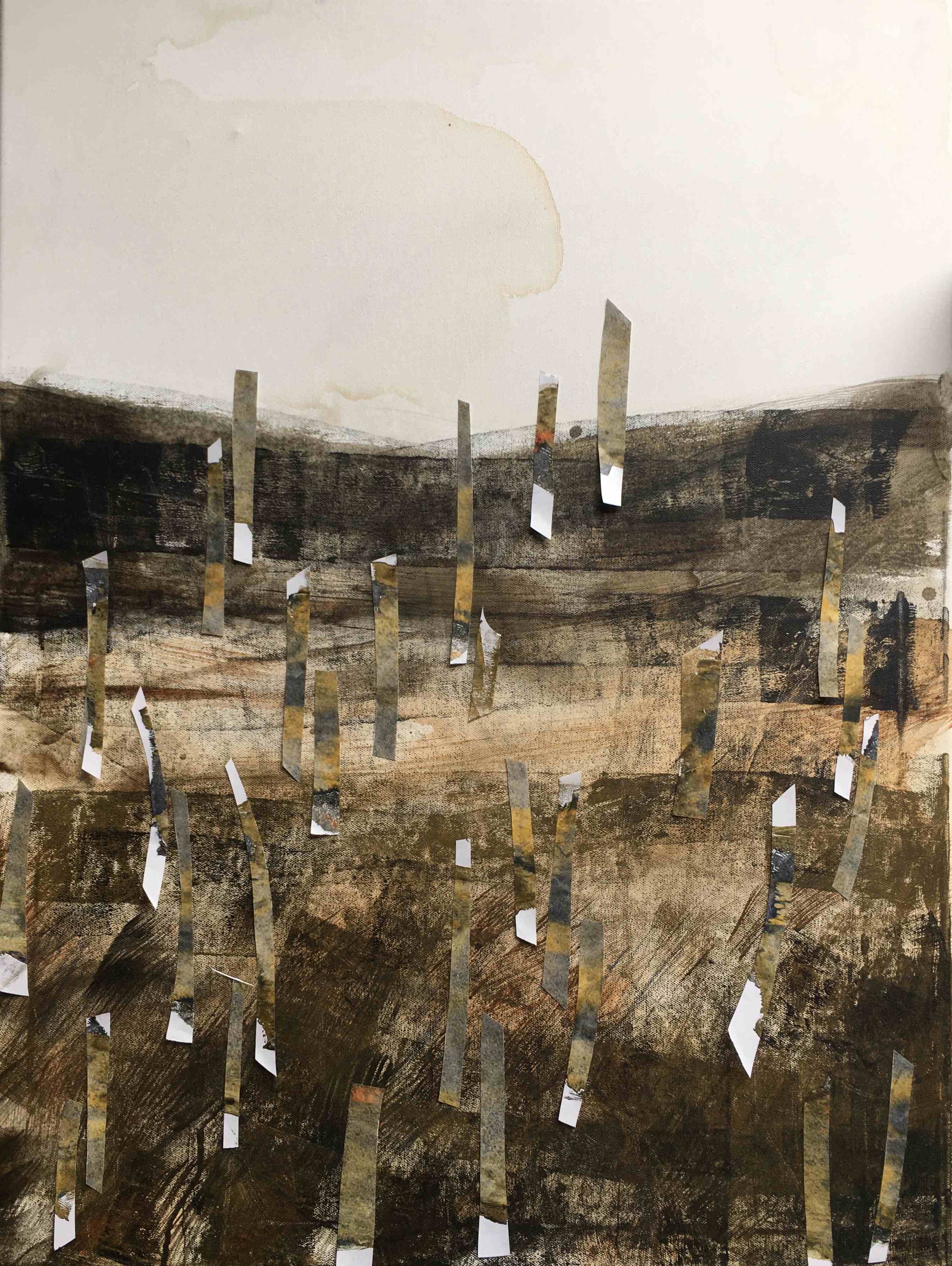 Following winter walks in Vlietland, wetlands near my home in The Hague, my work has moved on to an exploration of the colours and atmosphere there. The subdued yet rich palette and the piercingly cold wind. The cries of the birds and the rustle of the reeds. The big skies. Starting with works on paper, investigations into these observations inform my woven work. It’s an opportunity to experiment with colour and form without having to commit to the loom and the constraints it imposes.