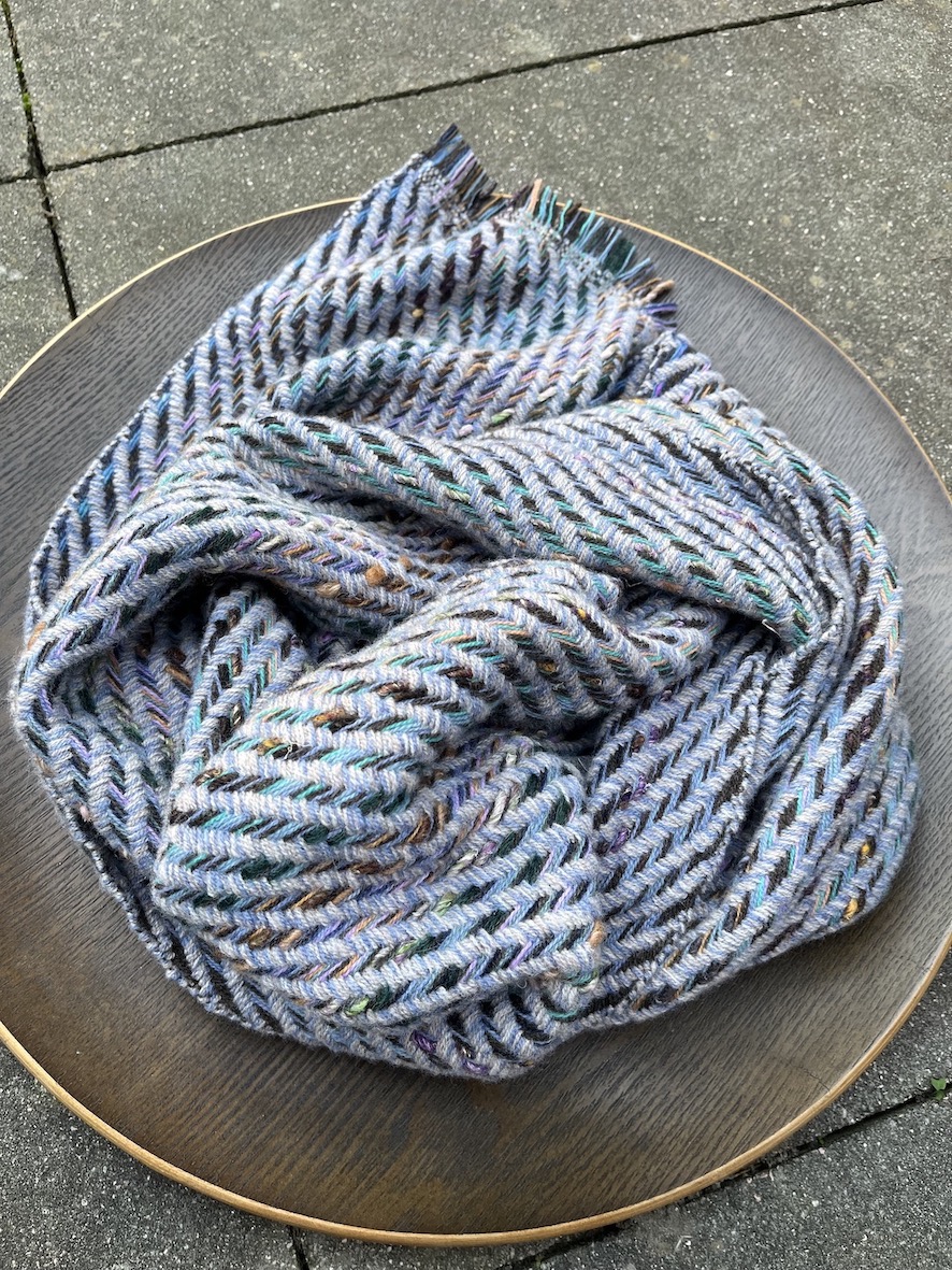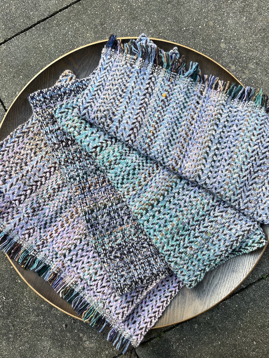 A commissioned scarf in purples and mauves…